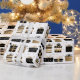 Wrapping paper shown in a festive Christmas packages print. Glossy paper shown