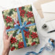 This holiday wrapping paper is shown with a festive poinsettias print.