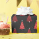 This wrapping paper is shown with a festive Christmas trees print in black and red.