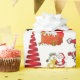 Colourful cute Christmas creatures with Christmas trees and white and red poinsettia