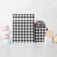 Wrapping paper shown in a country plaid print. Matte paper shown