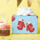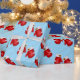 Holiday gift wrapping paper shown with a cute Christmas mittens print on a blue color background.