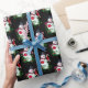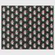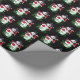 Holiday gift wrapping paper shown with a festive Christmas snowman print on a black background.