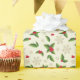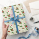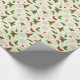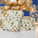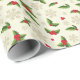 Holiday gift wrapping paper is shown with a festive winter holly print.