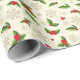 Holiday gift wrapping paper is shown with a festive winter holly print.
