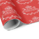 Holiday gift wrapping paper shown in a red background colour with a festive Merry Christmas print. Choose your background colour.
