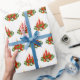 Wrapping paper shown in a festive Christmas mistletoe and candles print.