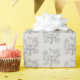 Holiday gift wrapping paper shown with a fancy partridge in a pear tree print in a silver colour on a silver background colour.
