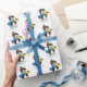 This Christmas wrapping paper is shown with a cute holiday penguin print.
