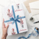This Christmas wrapping paper features a lovely watercolor illustration of a pine tree, that has simple and elegant red decorations. It creates a modern, minimalist pattern in a light pink background.