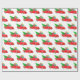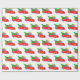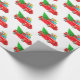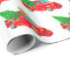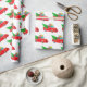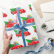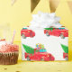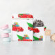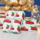 Wrapping paper shown in a festive Christmas holiday red truck and gifts with tree print.