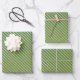 This wrapping paper sheets set is shown in a festive Christmas holiday colours of muted green with thin, diagonal stripes in tan. Semi-Glossy Shown
