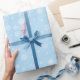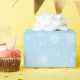 This Christmas wrapping paper is shown in with a ice blue background colour with a winter snowflakes print design.