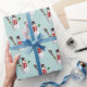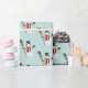 Wrapping paper shown in a festive Christmas snowman print. Matte paper shown