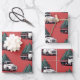 Festive Christmas present wrapping paper sheets featuring a vintage-inspired Christmas tree delivery truck graphic pattern. Designed on a red background, this stylish retro gift wrap combines nostalgic charm with a modern minimalist layout. Perfect for wrapping holiday gifts and packages, this fun and classic design adds personality to your wrapping while spreading festive joy. A timeless Christmas paper ideal for families, small businesses, or seasonal gifting.