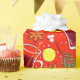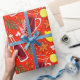 Christmas seamless pattern with a mug of mulled wine on a red background. A pattern with products for mulled wine with lemon, cloves and cinnamon. A pattern for wrapping paper or textiles.