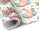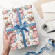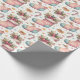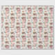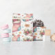 Colourful Christmas wrapping paper features charming illustrations of cosy stockings adorned with festive greenery and cheerful ribbons. Surrounding the stockings are stylised gifts, candy canes, and symbols of the holiday season, creating a joyful and vibrant design perfect for holiday celebrations.