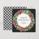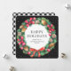 Christmas Wreath Black and White Plaid Business Holiday Card