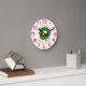 Candy cane numbers surround a green leaf Christmas wreath with a big red bow. Change the current text, "Time To Make The Christmas Cookies!", to your own words to personalise it. The background is clear to allow you to choose a colour other than white. Choose any size or shape of clock.