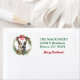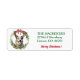 On this Holiday return address label, an Australian Cattle Dog is framed within a green Christmas wreath with a red bow at the top. Your custom text is in green at the right, with a text field for a greeting in red below.