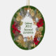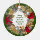 Modern, decorative Christmas wreath ORNAMENT with the message CELEBRATE JESUS EMMANUEL GOD WITH US at the centre. This text is customisable so you can replace with your own message or name. In the background, there is a subtle tiled message which says SEASON'S GREETINGS. On the back there is customisable text which you can change to your family name to make this a lovely Christmas gift, etc. Other Christmas ORNAMENTS and matching items are available in the CHRISTMAS Collections by Berean Designs.