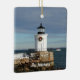 Christmas Wreath Family Lighthouse Ceramic Ornament . This sweet holiday design features Portland Breakwater Lighthouse, also known as Bug Light, with a Christmas Wreath and a dusting of snow. Personalise to add a nautical touch to your holiday.