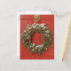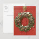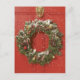 Christmas wreath hanging on a door holiday postcard