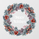 An elegant and timeless wreath comprising of green fir branches filled with pine cones and dried red floral flowers that are characteristic of a traditional Christmas wreath. The beautiful round frame forms a border around white fonts that read "happy holidays" which may be changed to any festive greeting of your choice.