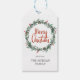 Get into the holiday spirits and gift of giving with these personalised gift tags. Christmas wreath with custom script in the middle coupled with your own monogram.