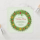 Modern Christmas Wreath Holiday Party Invitation featuring a green pine wreath with holly leaves and berries & gold stars set on a pretty pale green background. Flip our festive christmas party invitation over to view a matching wreath with the year for an extra special touch. Perfect for all your winter get togethers... office party, company party, dinner party, cocktail party, Tree trimming party.