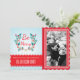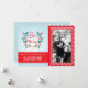 Christmas Wreath Light Blue and Red Custom Photo Holiday Card