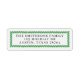 This product is a personalized white return address label sticker featuring a green botanical wreath border surrounding the address details. It would be searched for using terms like "personalized holiday return address labels," "Christmas mailing labels," "green wreath address sticker," "family holiday address labels," and "seasonal envelope seals." It fits into the art licensing themes of "Holiday/Seasonal" and "Stationery & Paper Goods," specifically featuring the classic motifs of "Wreaths," "Foliage/Botanicals," and the "Green Color Palette."