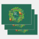Christmas Wreath Monogram Hunter Green Wrapping Paper Sheet