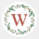 Your family monogram initial is surrounded by a delicate floral Boho-style Christmas wreath. Tiny micro red berries are scattered in the green leaves. The monogram is red to match them.