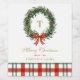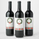 Christmas Wreath Monogram Plaid Family Name Wine Label