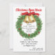 Traditional Christmas wreath invitations with a red ribbon and golden bells create a pretty invitation for holiday parties. Shown here as an open house design. Personalise to create your own custom event.