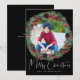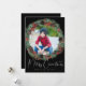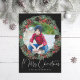 Christmas Wreath Photo Frame on Black Holiday Card
