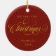 Christmas Wreath Photo Ornament featuring your favourite photo in the centre surrounded by a traditional Christmas Wreath with greenery and berries on a deep red background. The back has the same deep red with gold text. A beautiful "swirly" Christmas script together with your customisable text gives an elegant and classic impression. This will be a cherished keepsake for years to come for the festive season - you design it and adapt for a newborn, children, pet or a family portrait ornament.