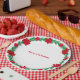 Christmas pine wreath, poinsettias and Christmas balls paper Plate. Text can be personalised.