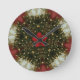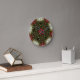 Christmas Wreath Red Green Gold with Red Star Round Clock