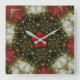Christmas Wreath Red Green Gold with Red Star Square Wall Clock