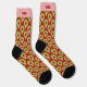 Whimsical personalised Christmas socks created using hand painted watercolor wreaths with a pink coquette bow on a deep red background. Perfect to wear all season long. Original art by Leslie Larson,