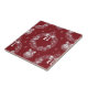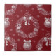 An elegant vintage toile-style Christmas pattern ceramic tile featuring intricately wreaths, bows, ornaments, and snowflakes in crisp white linework against a deep red background. This seamless design blends traditional holiday motifs with classic toile artistry, evoking a timeless and festive charm. This pattern captures the warmth and sophistication of a traditional holiday celebration in a refined, monochrome palette.