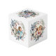 Christmas wreath with berries and flowers photo cube. This photo cube is adorned with a lovely Christmas wreath frame, which is embellished with branches, white flowers, red berries, and green leaves. The cube itself is designed to showcase five distinct photos on its sides within the wreath frame, allowing you to display cherished memories or festive moments. With its intricate details and festive elements, this photo cube is a perfect addition to your holiday decor.