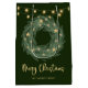 Christmas Wreath with Gold String Lights on Green Medium Gift Bag