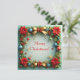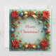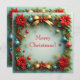 Festive holiday wreath with red poinsettias, decorative baubles, and golden ribbon accents, set against a vibrant background, perfect for Christmas season designs, invitations, and greeting cards.