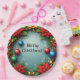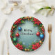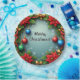 Festive holiday wreath with red poinsettias, decorative baubles, and golden ribbon accents, set against a vibrant background, perfect for Christmas season designs, invitations, and greeting cards.