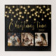 “Christmas time” in beautiful script on a black background. Add your photos with 3 of your own. Gold faux string lights/ lanterns hanging down. Change the year and what a fun family puzzle. A perfect gift.