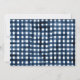 The back of the card shows a buffalo plaid gingham pattern in shades of white and blue.