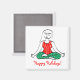 Holiday yoga magnets and gifts for Christmas and the Holidays. Picture of a women in seated yoga pose wearing Christmas coloured red and green patterned clothing. Add text to personalise these yoga holiday products.